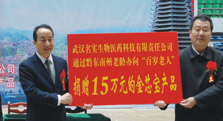 通过黔东南州老龄办向“百岁老人”捐赠15万元的金芯宝产品。